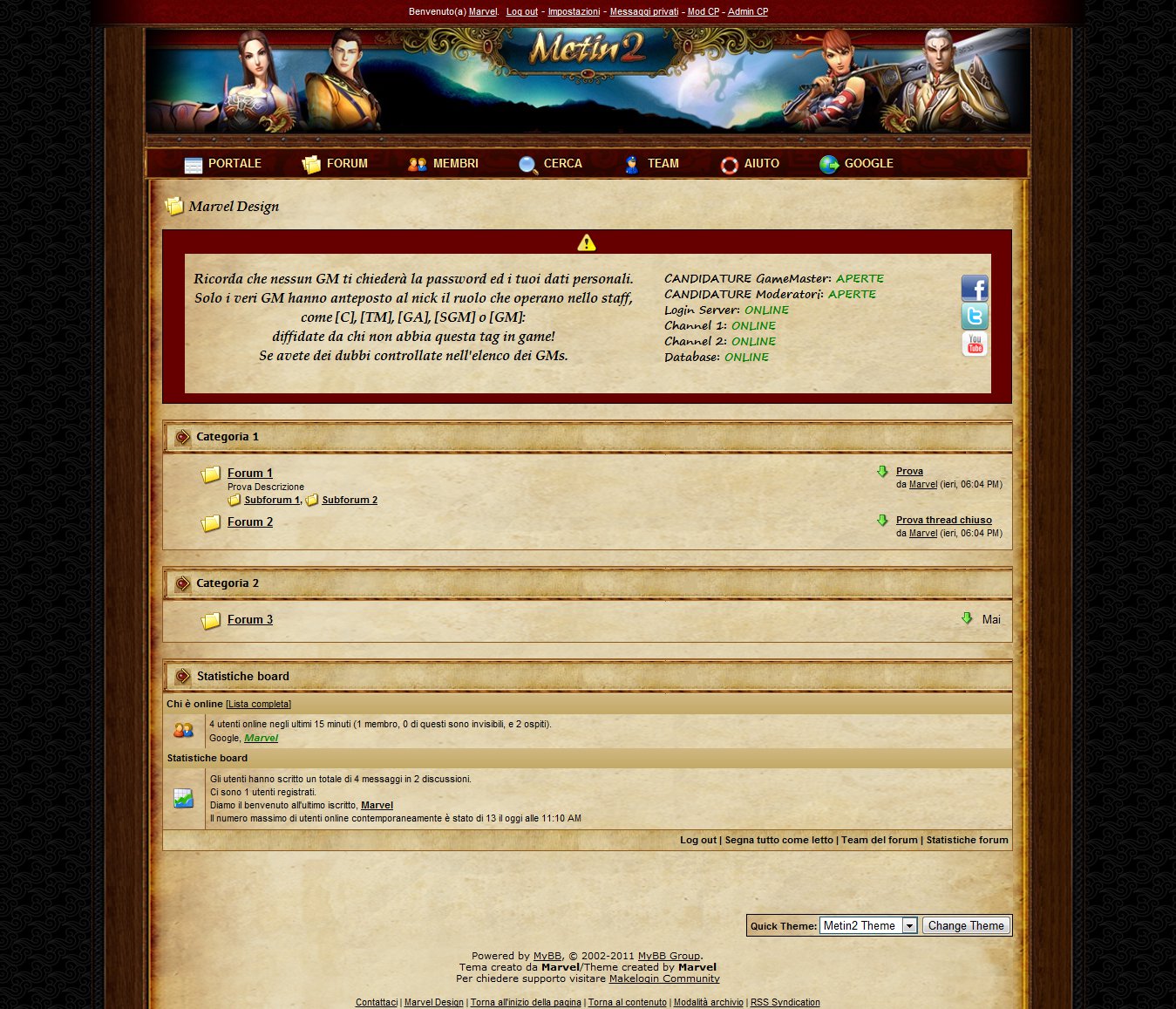 The theme is a simple but good imitation of the skin normally used in the official forum of Metin2, doesn't violate any copyright and may be used safely.Autor: Marvel