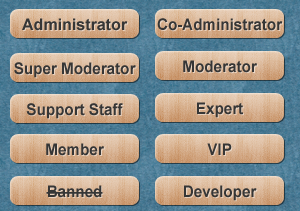 MK's Woody Badges is an Elegantly styled badges for any forum. It derives its name as it is given a wood look-alike finish. It is suitable for any forum and with the PSD INCLUDED, you can edit it to make any further badges to match the groups on your forums.Deutsche Übersetzung: noch nicht übersetzt