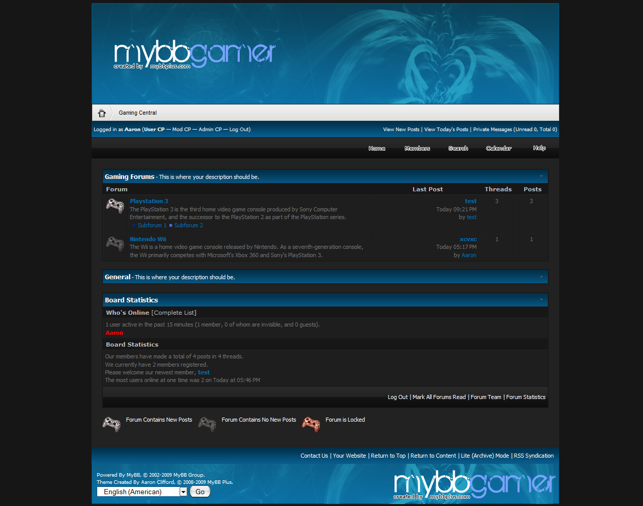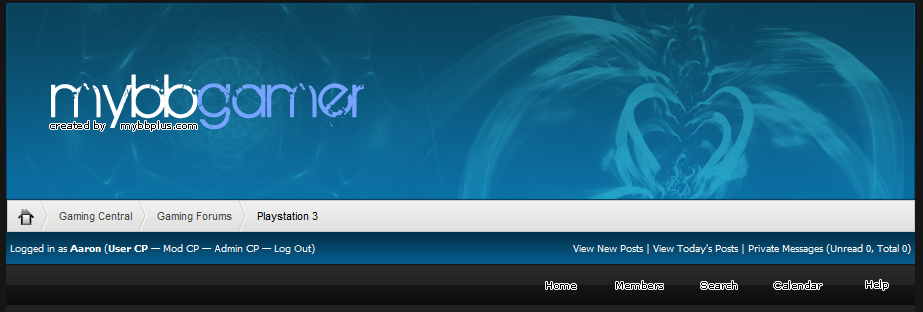 This theme is a smooth black and blue gaming style theme that would sould gaming forums and with a simple forum indicator change any forum that you run.