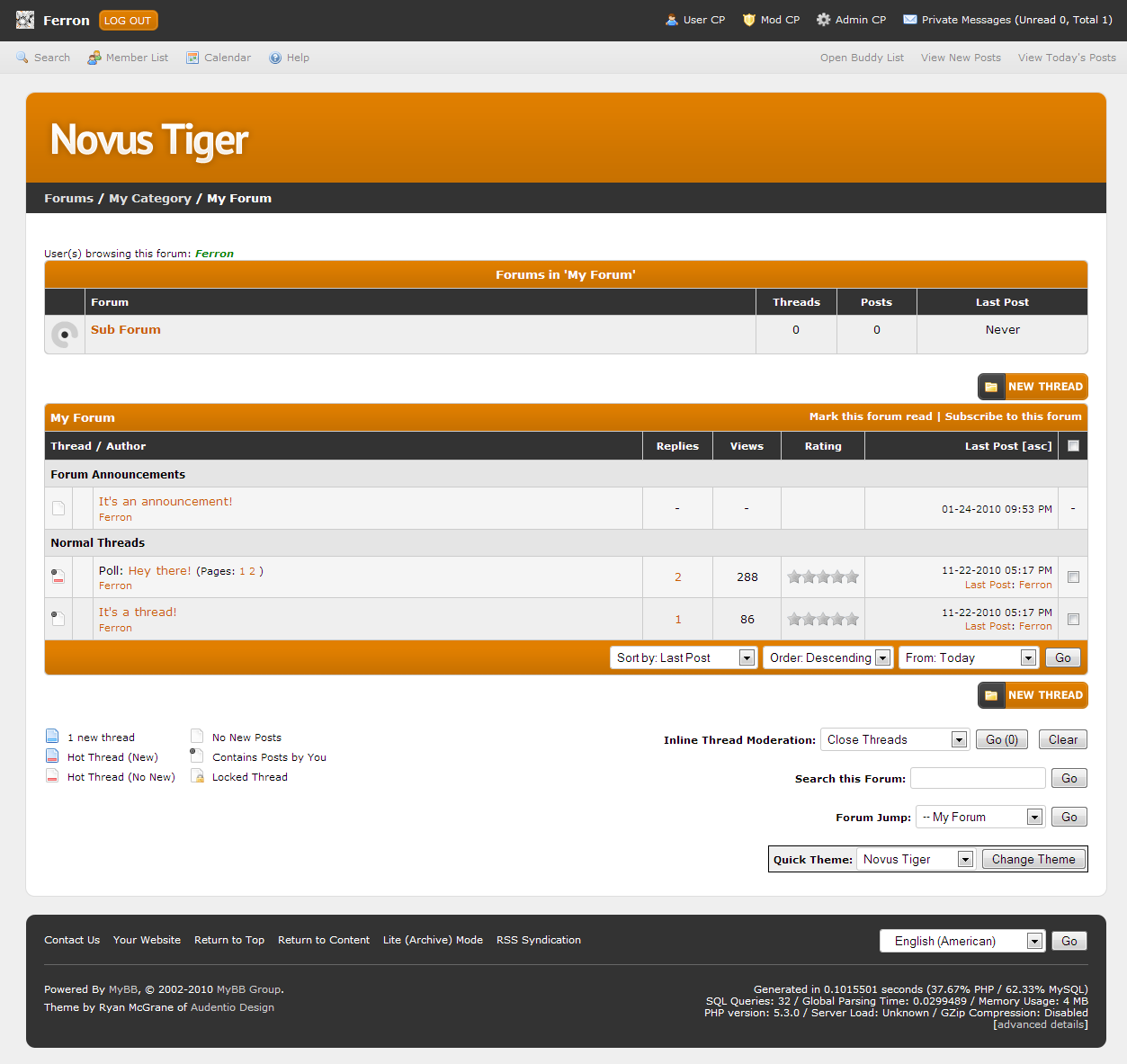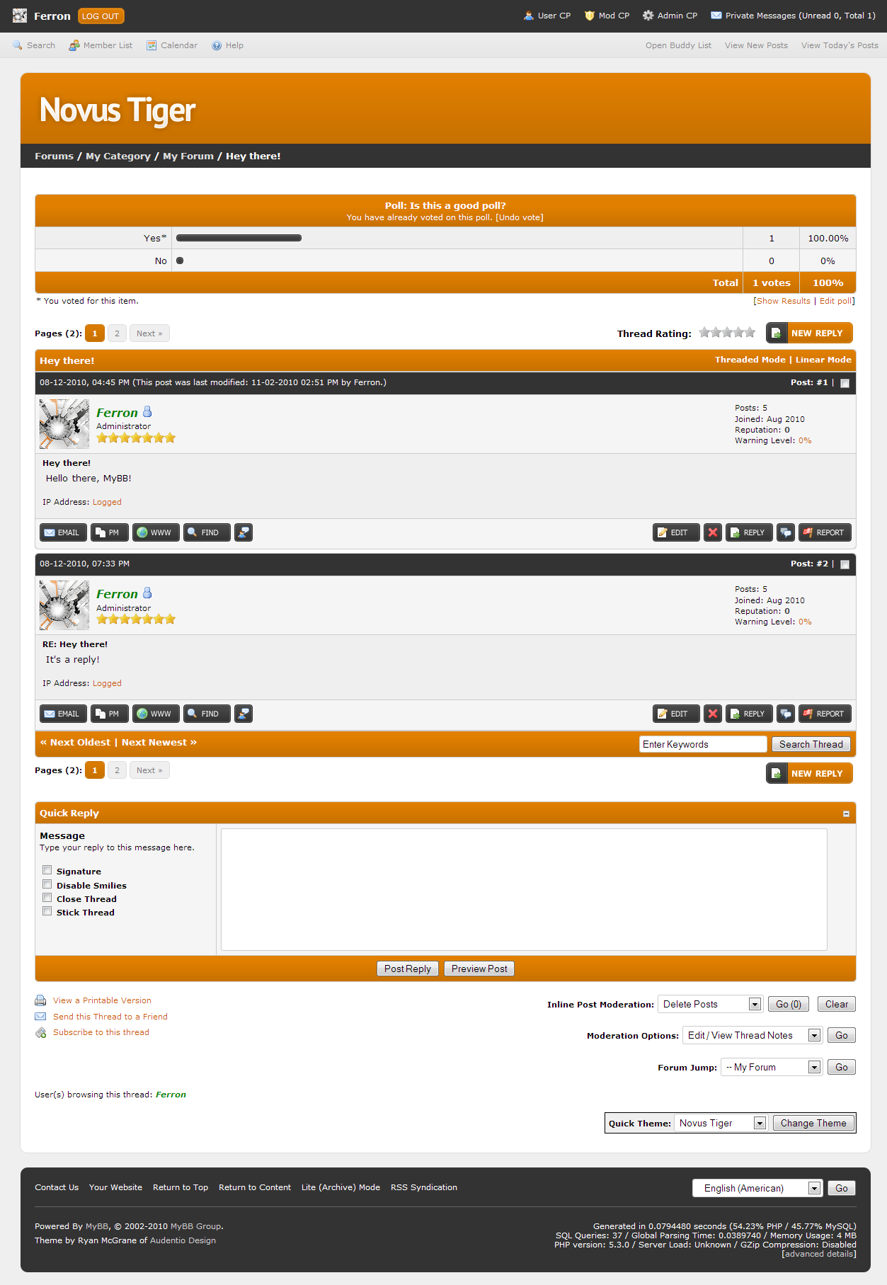 Novus 2 Tiger is the orange version of the Novus 2 theme series. It's so simple to use and customize that you'll want to install it on every forum.Deutsche Übersetzung: noch nicht übersetzt