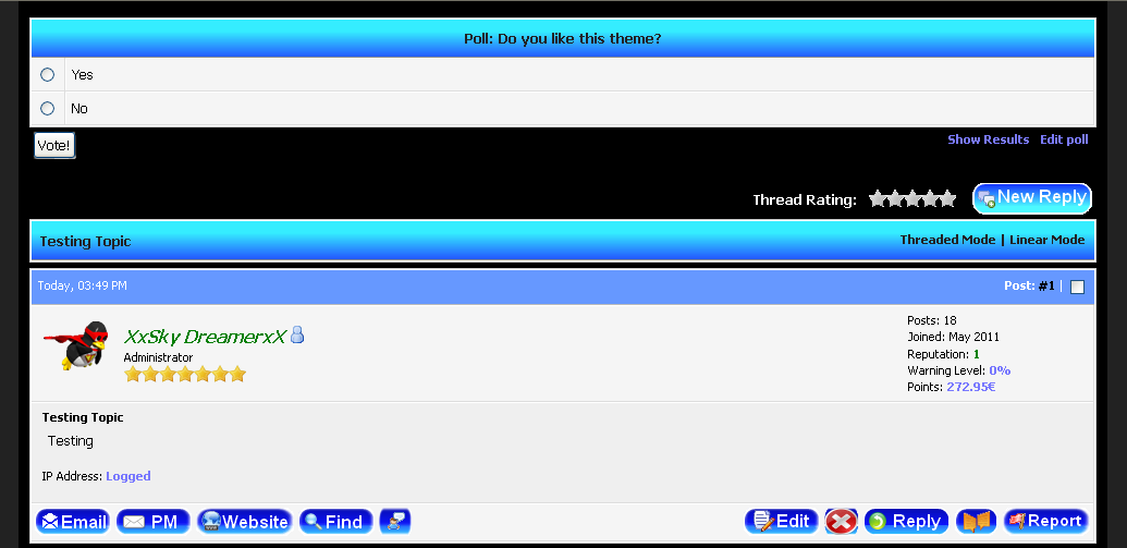 Techno-Theme is the latest theme about Technology. This theme has a custom drop down menu. It also has latest news bar which is using marquee tag. Menu bar comes with rounded corners. In addition, the official headers for your forums will be available on request for free.Autor: XxSky DreamerxX