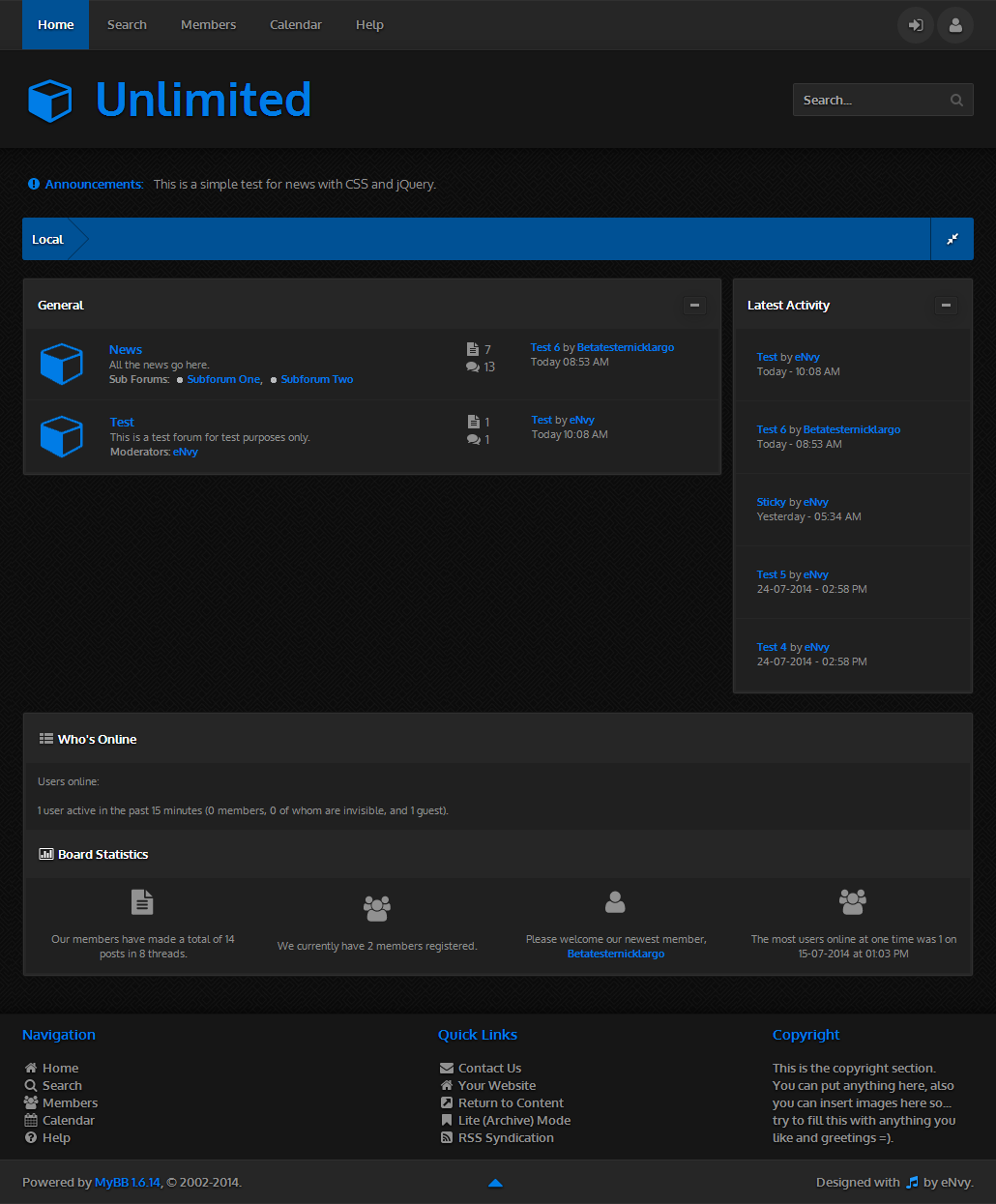 Unlimited theme is a dark-based theme with minimalistic details, css3 effects, font awesome icons and a lot more.Autor: eNvy