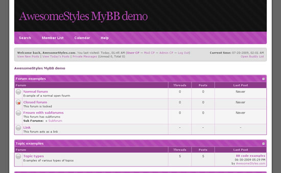 Crystal Purple is a simple purple theme made for the MyBB 1.2.x series.