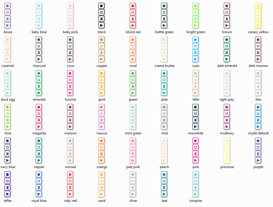 Minimal transparent forum icon sprites in 52 colors including MyBB default color. Being transparent means they can be placed on any background.Autor: talen_j