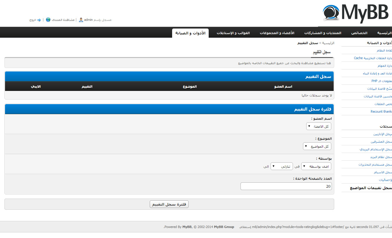 Adds a log of all thread ratings viewable in the Admin CP. The log will tell you who rated what, and the rater's IP address.Autor: Starpaul20