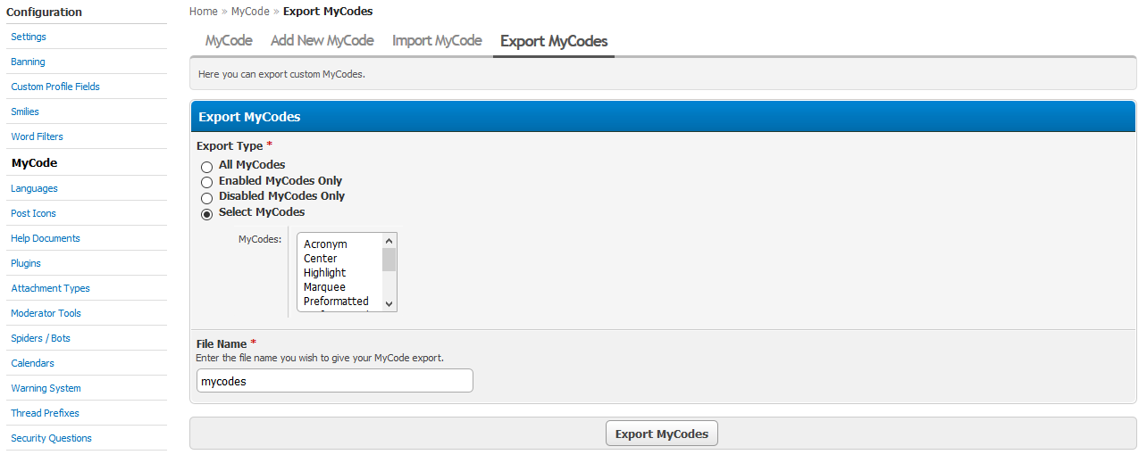 Allows you to export and import MyCodes.Autor: Starpaul20