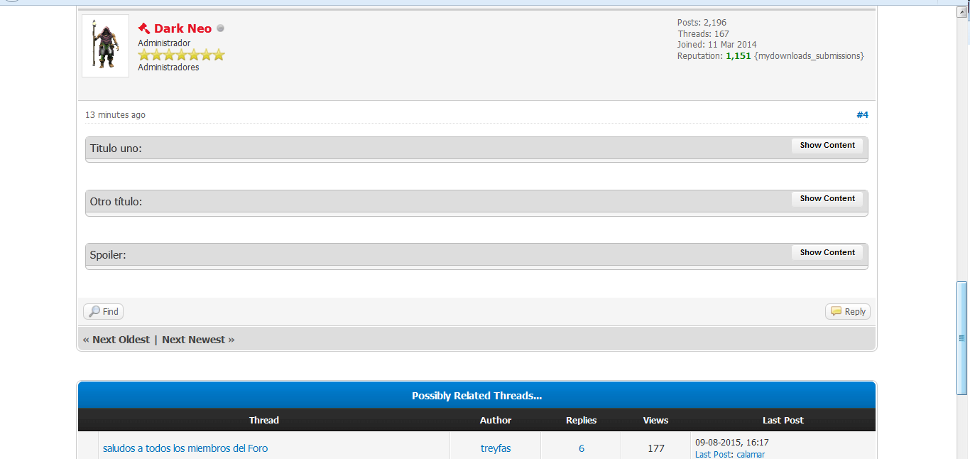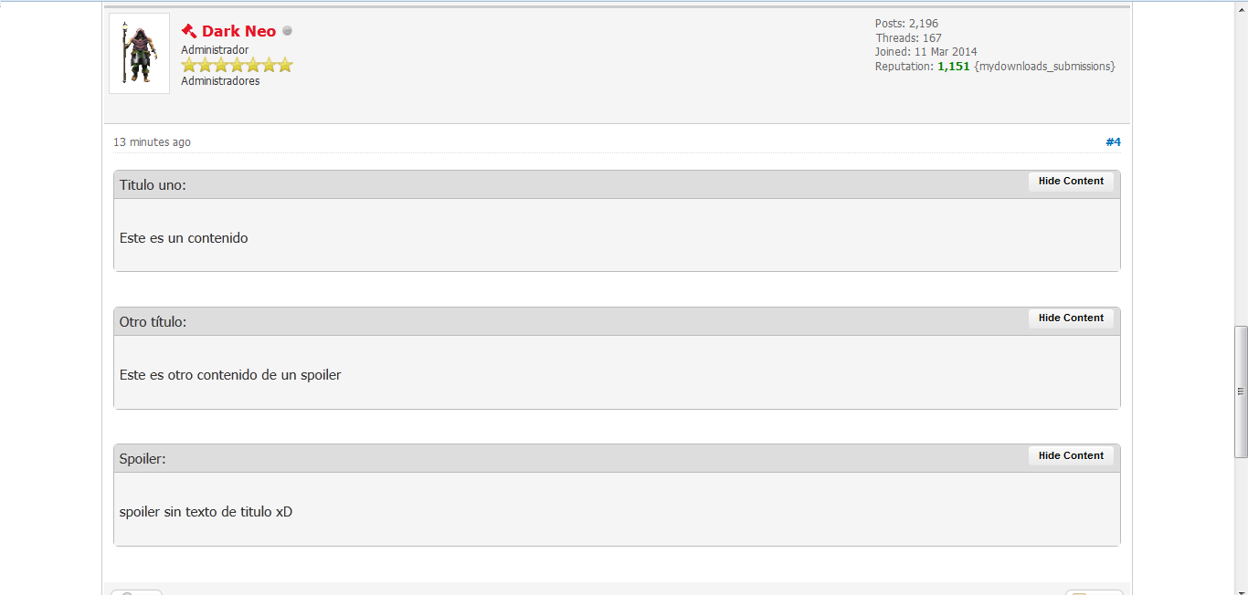 My spoiler is an advanced plugins who allows you to use mycode spoiler on your forums in thre ways:Autor: Whiteneo