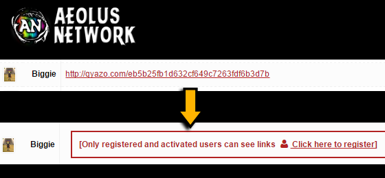 This plugin will allow you to set custom messages to those users who try to see links posted by users in your forums, showing to a link/button to the register page.Autor: YaelDD