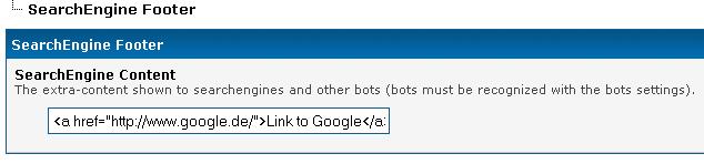 Displays a extenden Footer for Searchengines eg. for PageRank-Backlinks
