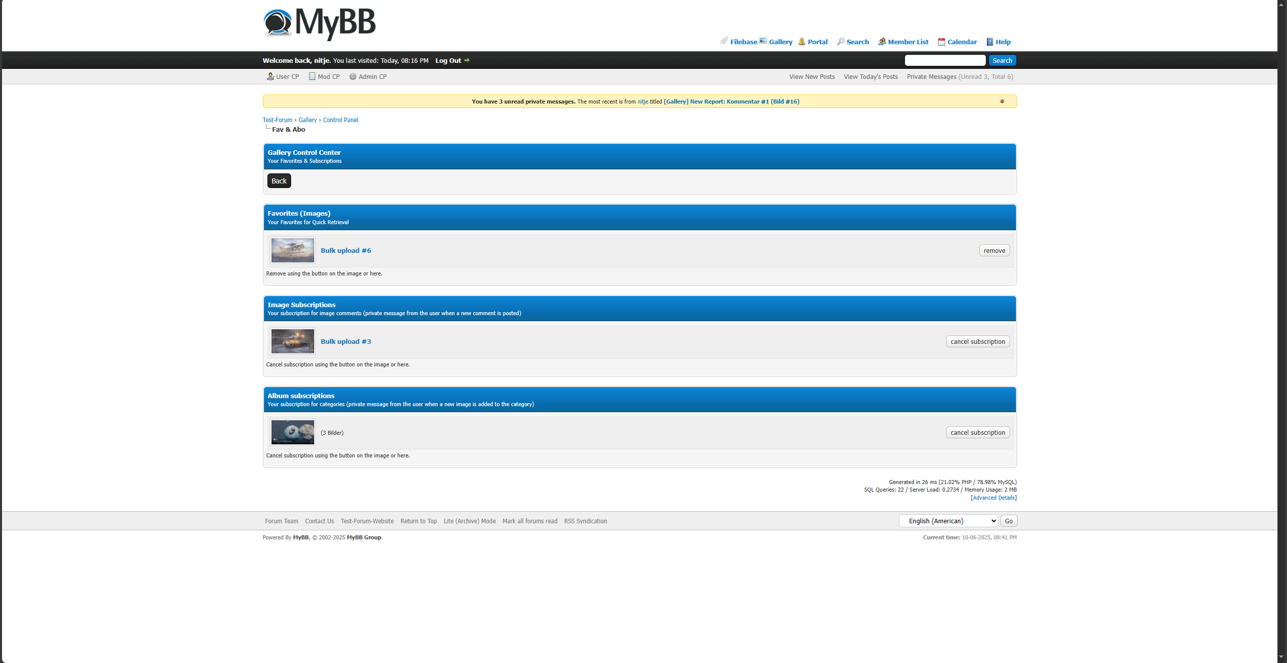 - PM & email notification for subscribed images or albums
