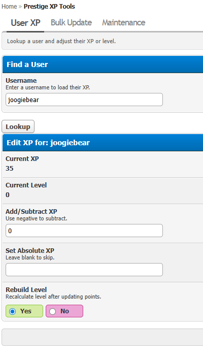 - Admins can manually add, edit, or reset XP via Tools & Maintenance → Prestige XP Tools.