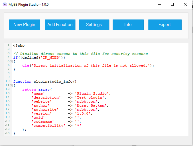 Quelle: MyBB Plugin Studio - Create your own plugins bei MyBB.com
