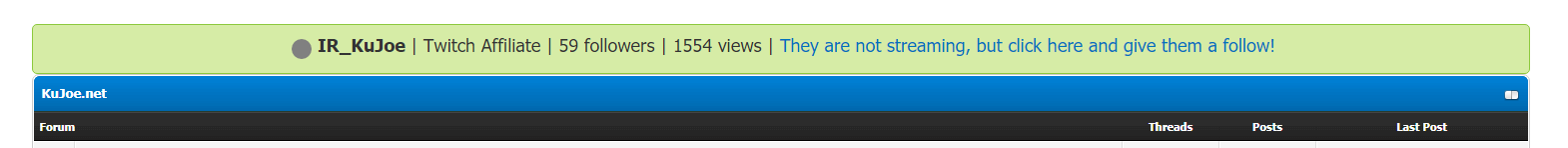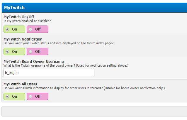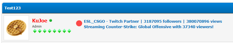 Adds Twitch integration into MyBB (forum owner notification and info on index, user info in postbits).