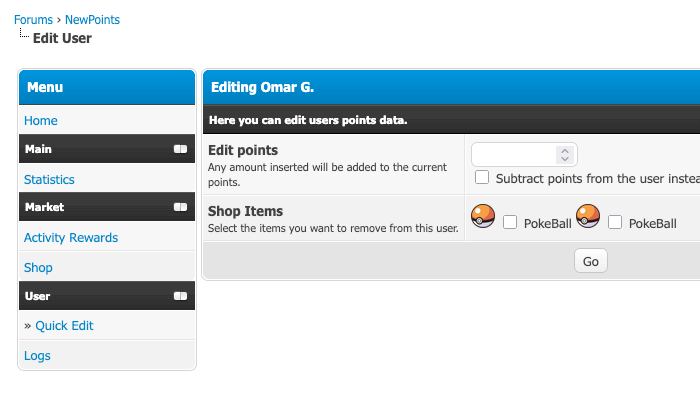 Quickly edit user's NewPoints data from the forums.Autor: Omar G.