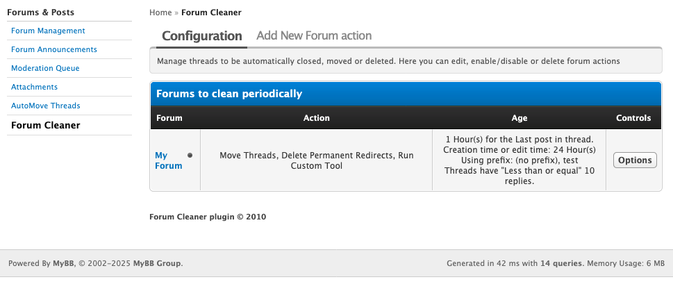 Forum Cleaner 2.5.1 von asmile für MyBB 1.6.x