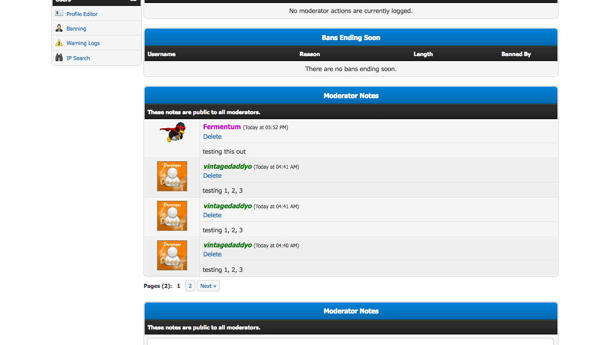 What it does is store and display a list of all the notes you have in the moderator control panel, they can be removed from the panel moderated by the moderators but not be removed from the log of notes on the administration panel that is due caused by the discussions.