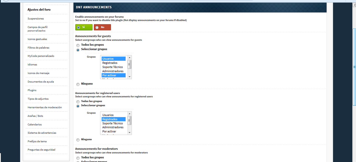 Board Announcements Manager zum erstellen von Ankündigungen im Forum.