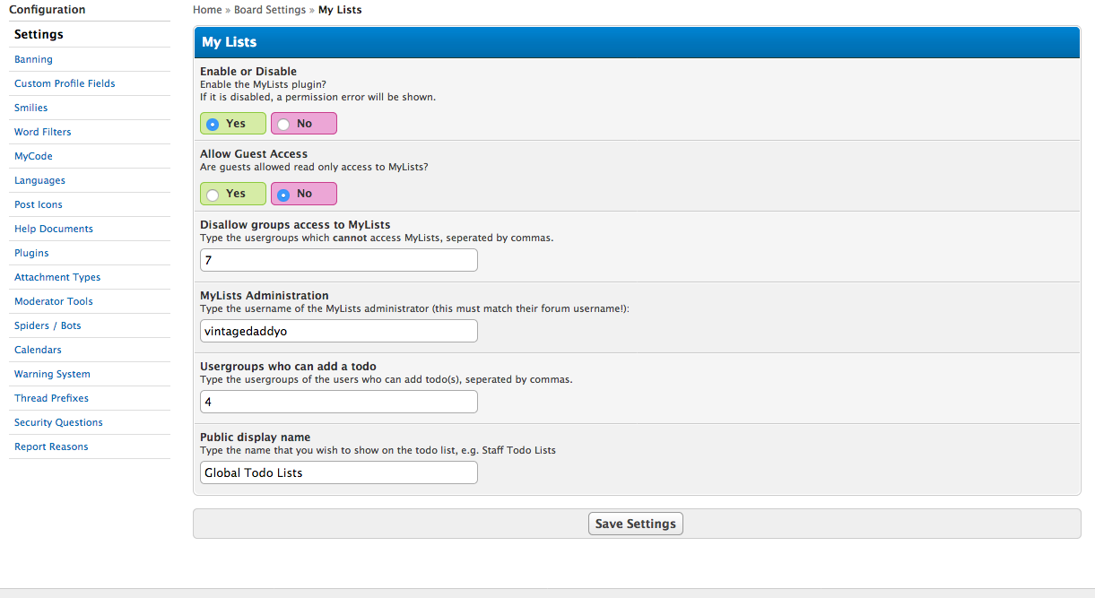 My Lists creates a global Todo list page that logged in users can access through their usercp.