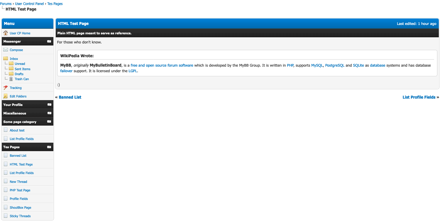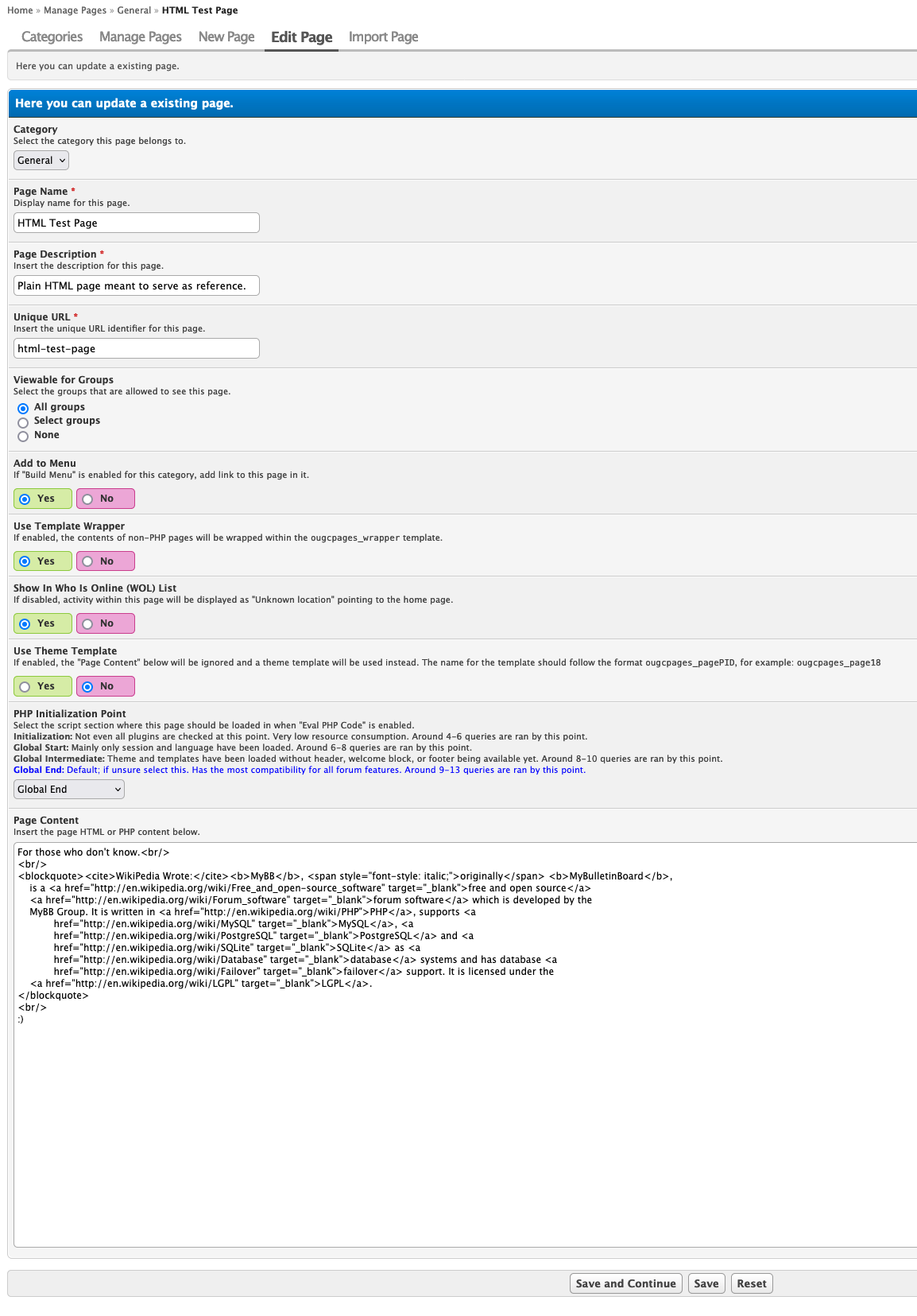 OUGC Pages is a versatile and feature-rich PHP plugin designed for MyBB forum administrators. It empowers administrators to effortlessly create, manage, and customize unlimited HTML or PHP pages within their forum. With this plugin, administrators can enhance their forum's functionality by adding unique and personalized content.