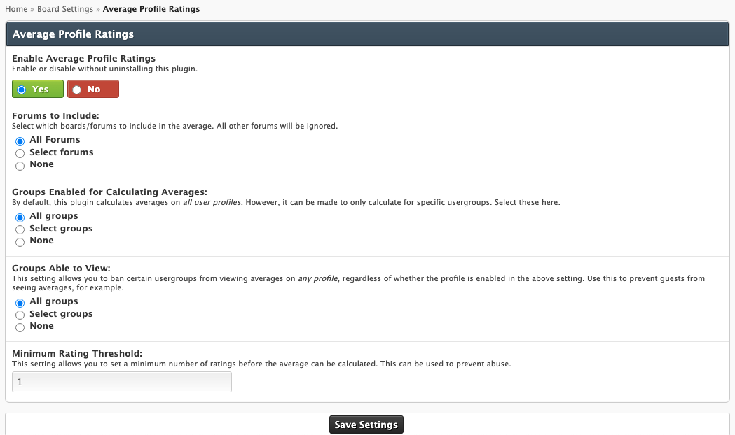 - Configure which usergroups allow average ratings to be calculated.