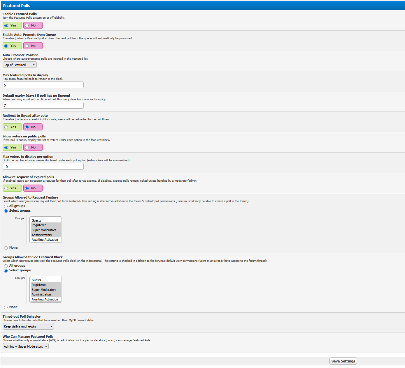 - Go to ModCP -> Featured Polls to configure and start featuring