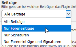 - Wähle aus, wo Links ersetzt werden sollen. [Überall, Nur Foreneinträge, Nur Signaturen, Nur Foreneinträge und Signaturen]