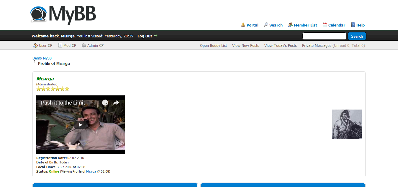 The default avatar, signature, and profile options that you set in the Admin CP will be given to each user who registers on your forum.MyBB Versi...