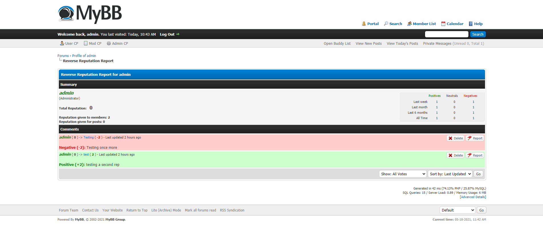 Reputation Manager 1.0 von Paretje für MyBB 1.4.x