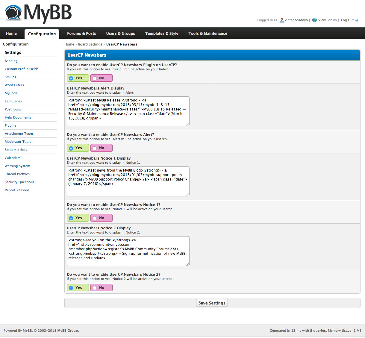 Add three newsbars to your UserCP