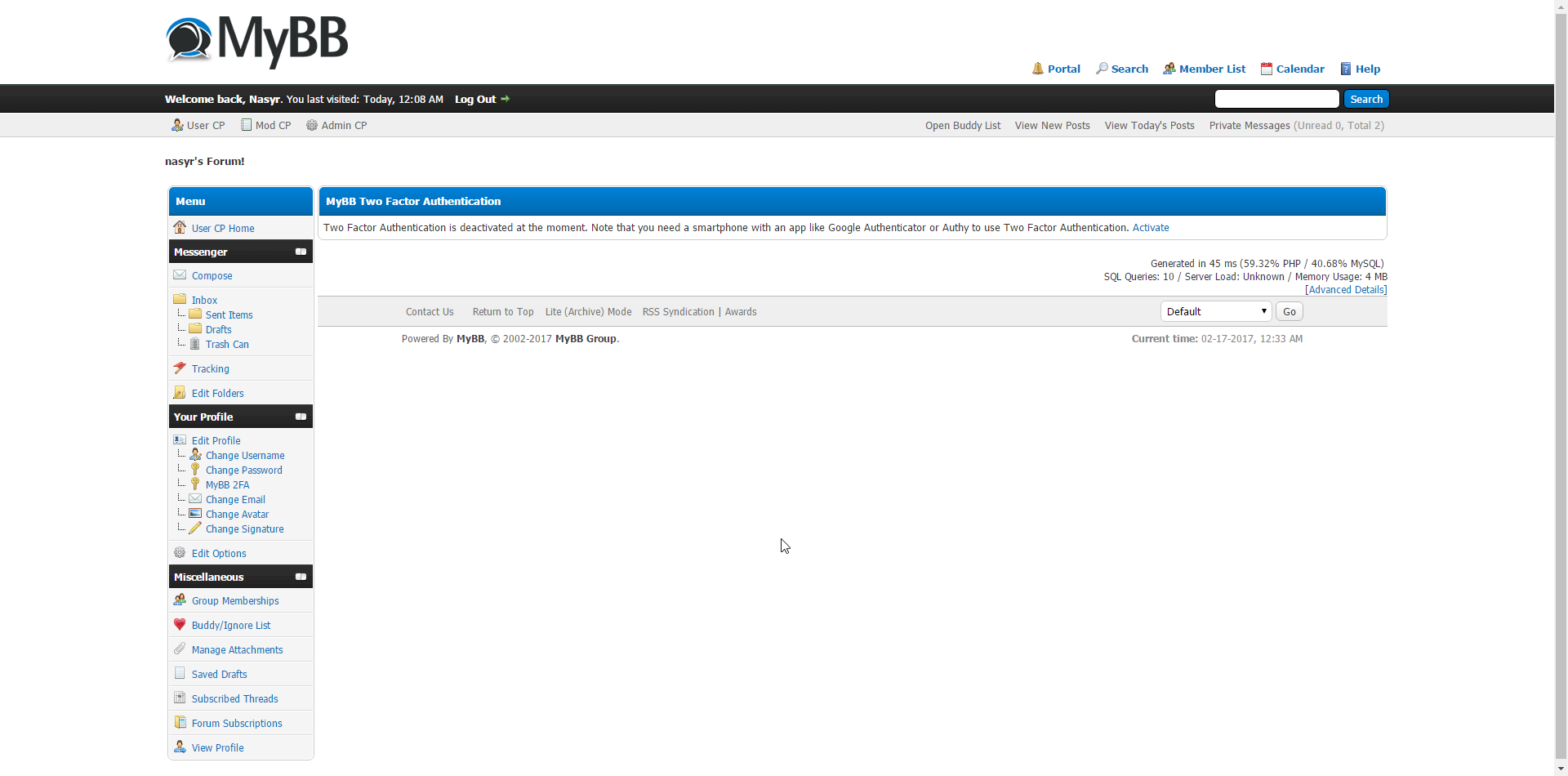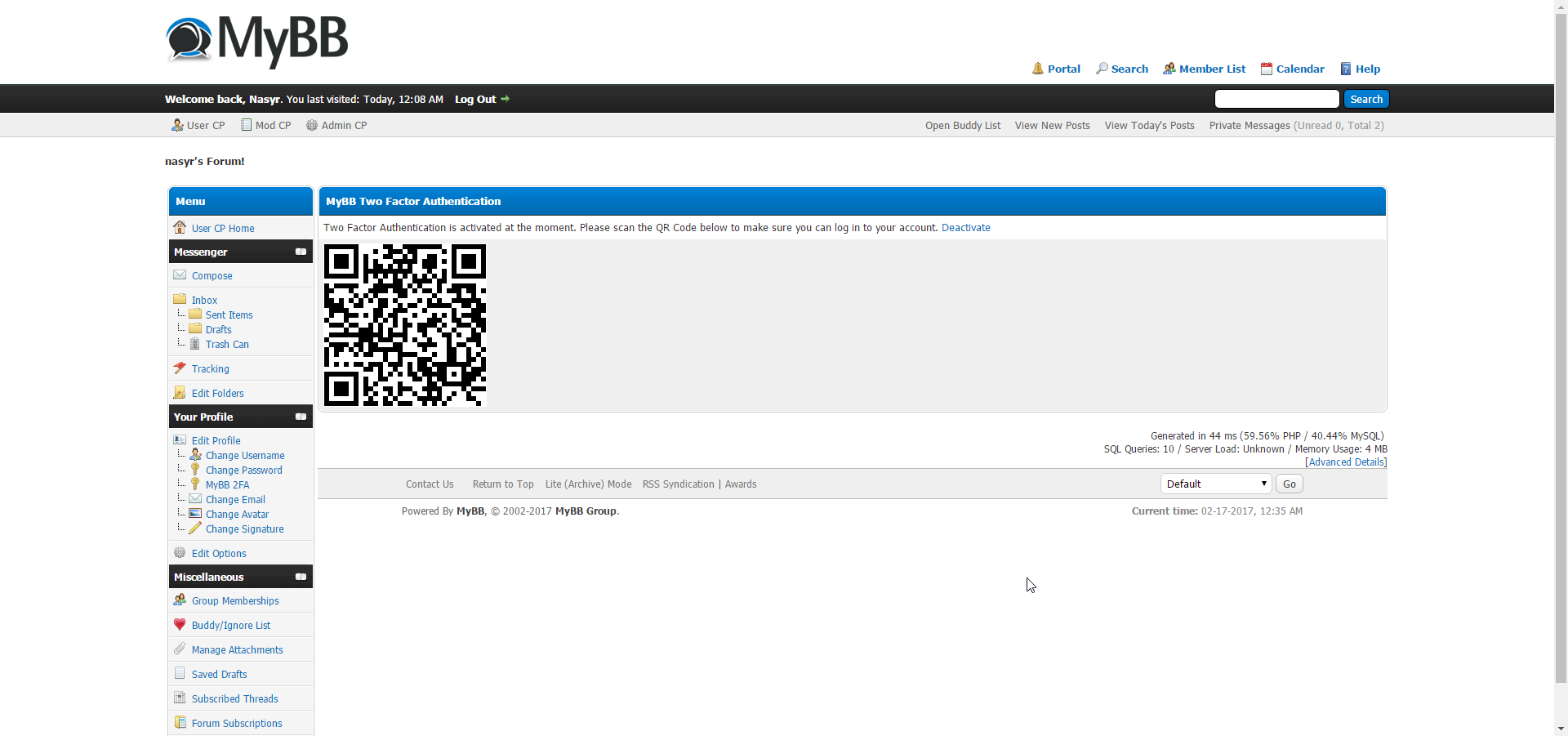 Quelle: 2 Factor Authentication bei MyBB.com