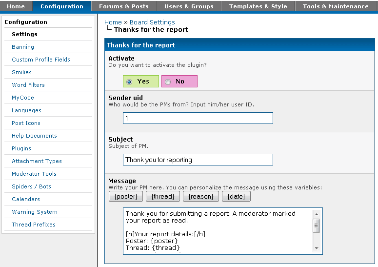 Thanks for the report 1.0 von SaeedGh für MyBB 1.6.x
