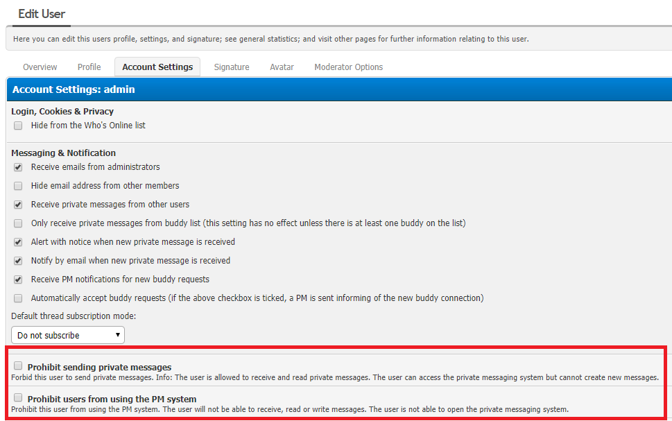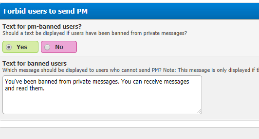 - der Benutzer das komplette Private-Nachrichten-System nicht mehr benutzen darf
