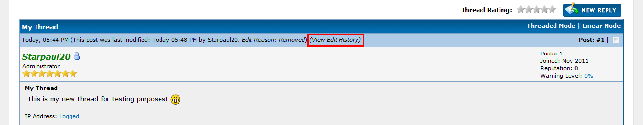 Edit History Log 1.3.1 von Starpaul20 für MyBB 1.6.x