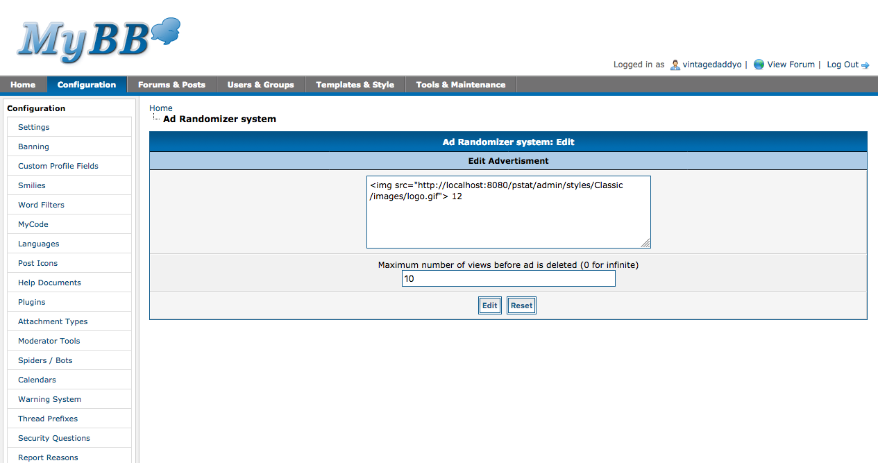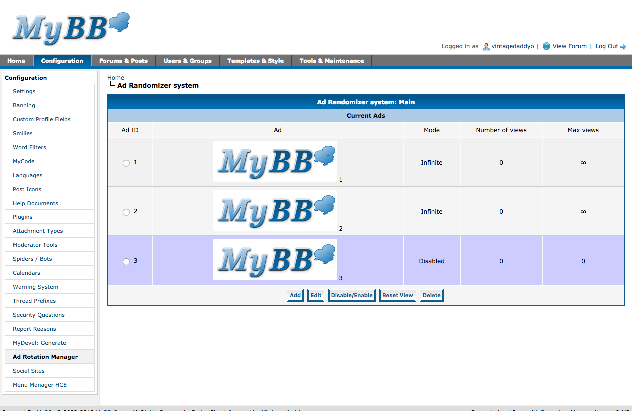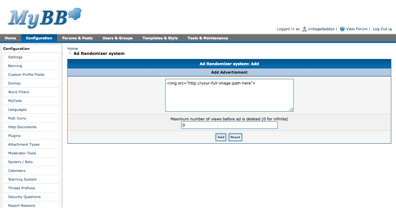 This ads will display a banner on your forum, at random, from a mysql database table.