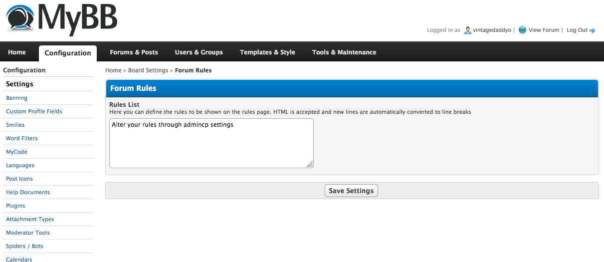 Adds a rules page to your forum