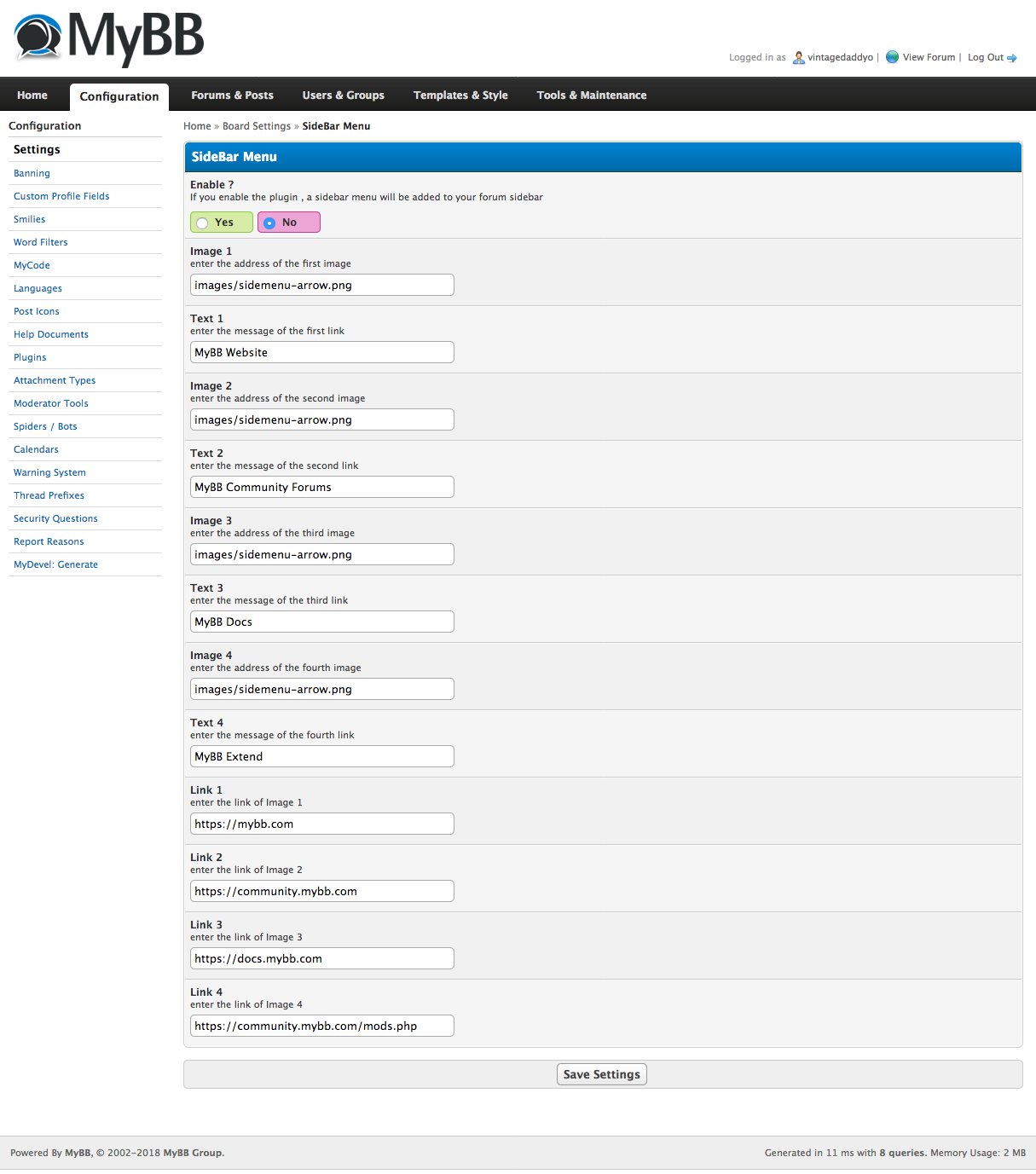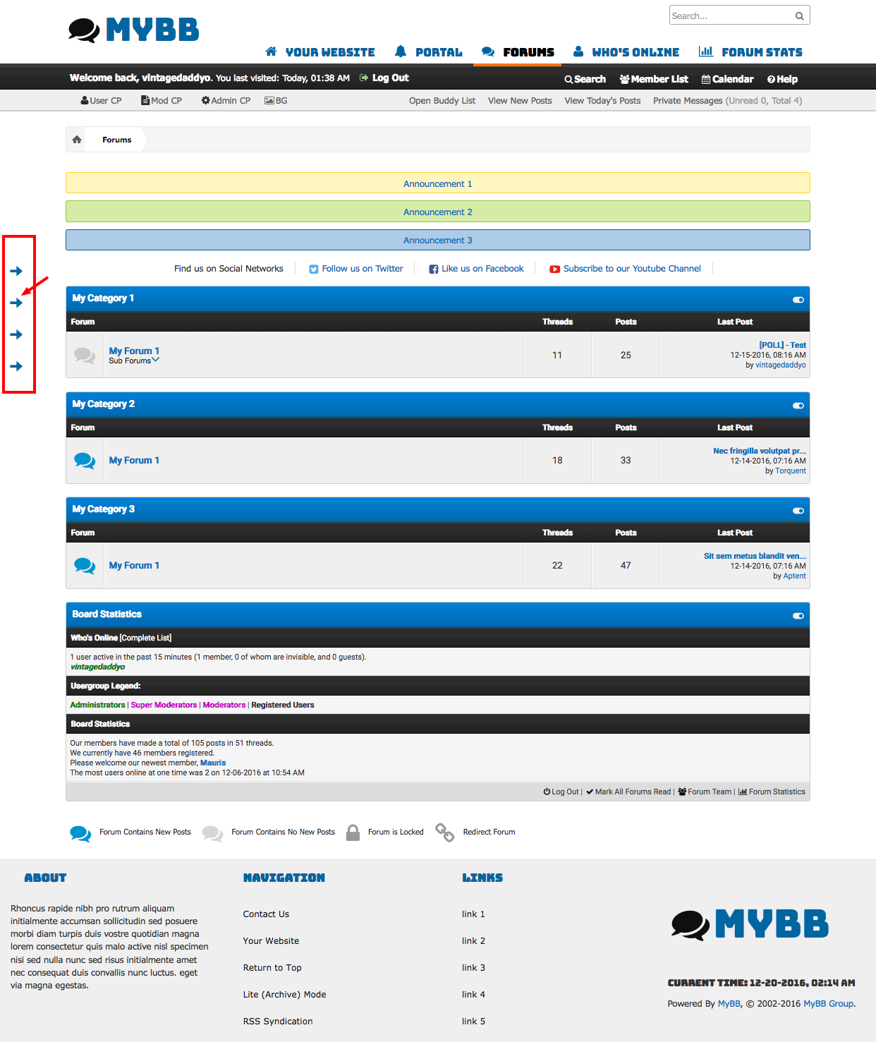 Display a sidebar menu for your forum