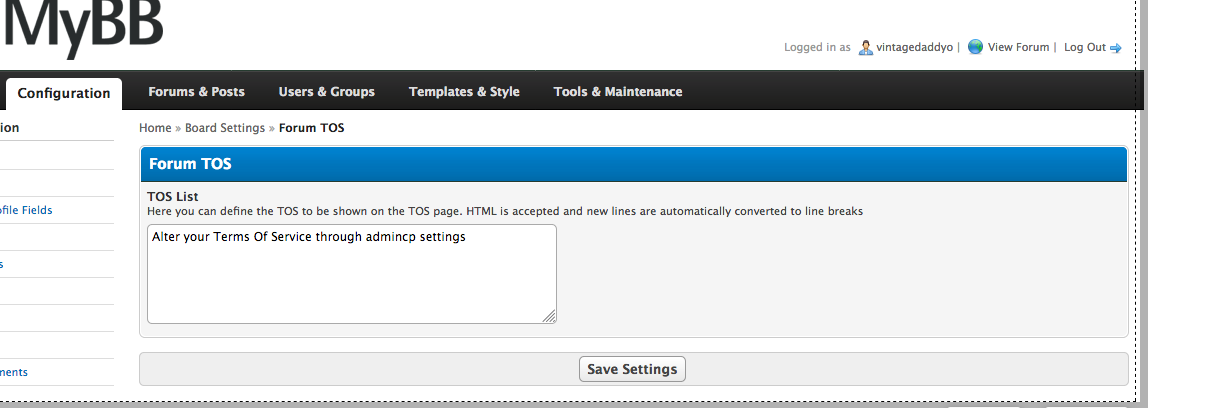 Adds a Terms Of Service page to your forum
