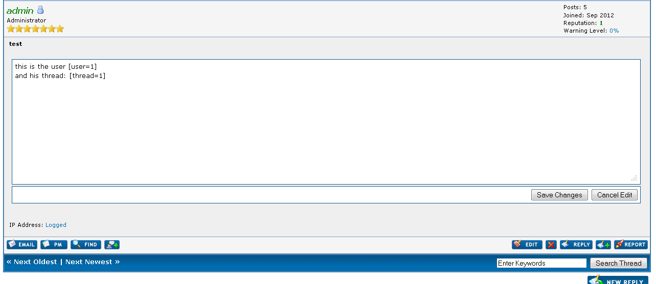 this plugin add a mycode to enter user ID or/and thread ID, and it will be changed to a link in the username or/and a link to the thread.