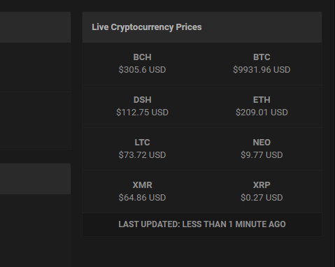 Display live cryptocurrency prices with the use of Shoppy.gg API.