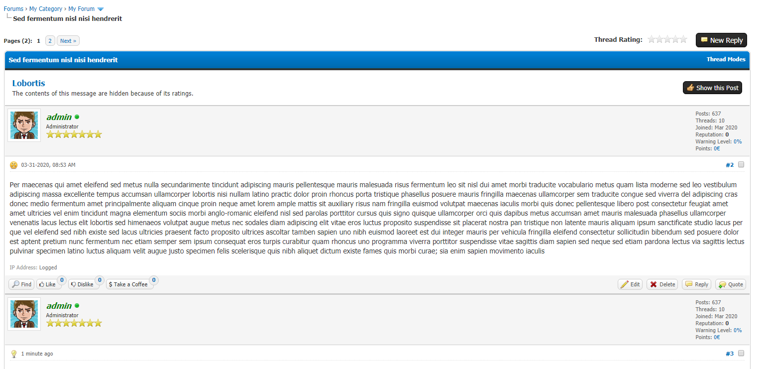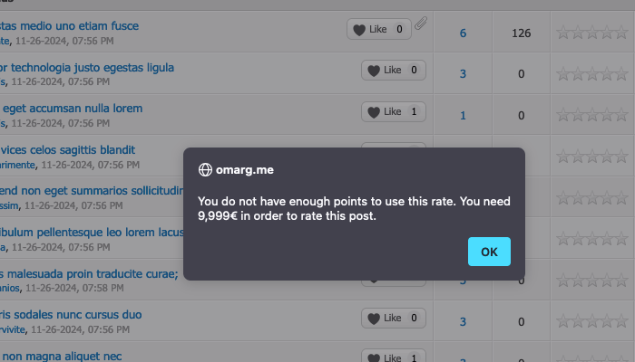 This plugin lets you create unlimited rating types like "Like" or "Dislike," while showing detailed rating stats in user profiles. You can add reputation points when users rate posts, set group permissions, and even configure ratings per forum. Features like requiring ratings to download attachments or hiding posts based on low ratings help you control and shape user interactions.
