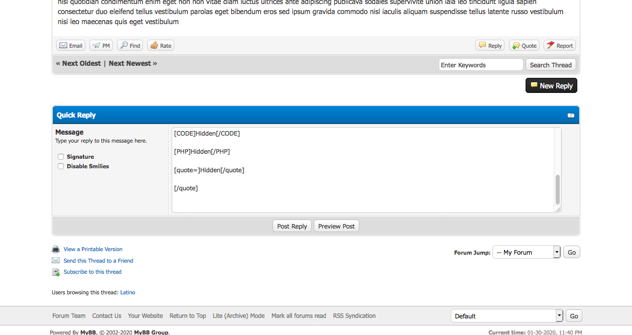 Note: if you have mycode signatures it is suggested just to also disable signature viewing for the same user groups you are using in this plugin. You can disable signatures for desired user groups in acp home > board settings > profile options