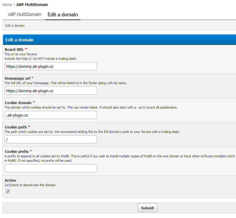 This MyBB plugin allows admin to set several urls used to access the same forum.Autor: Crazycat
