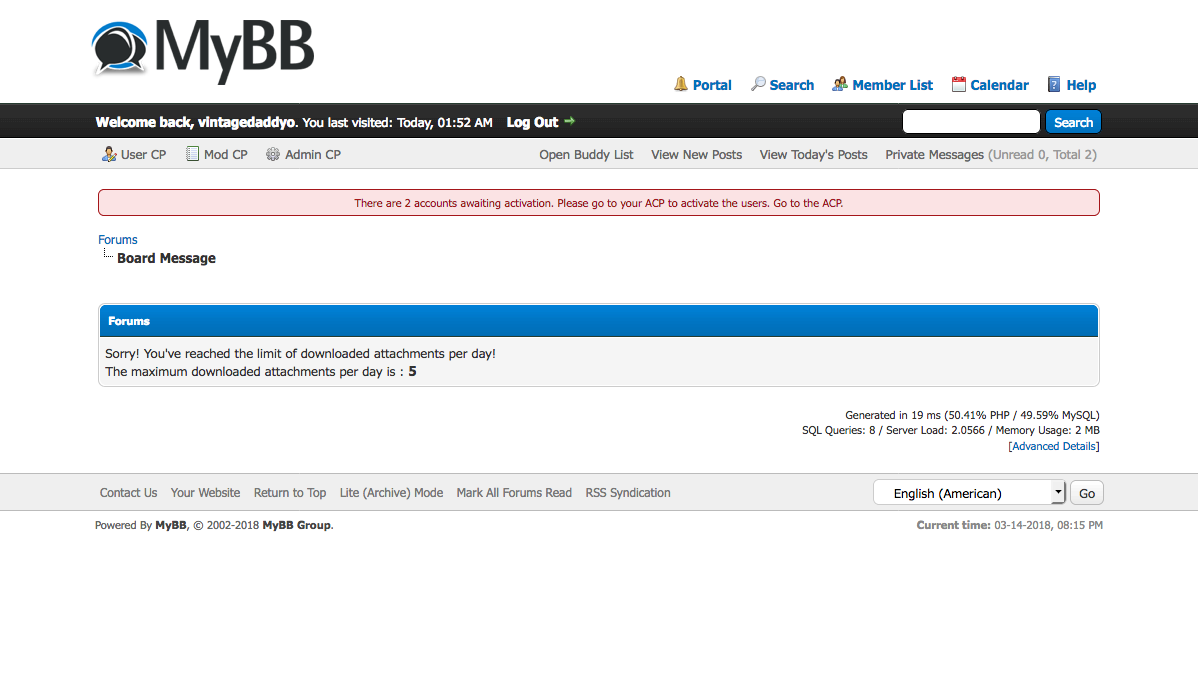 Quelle: Attachment Downloads Limit Per Day bei MyBB.com