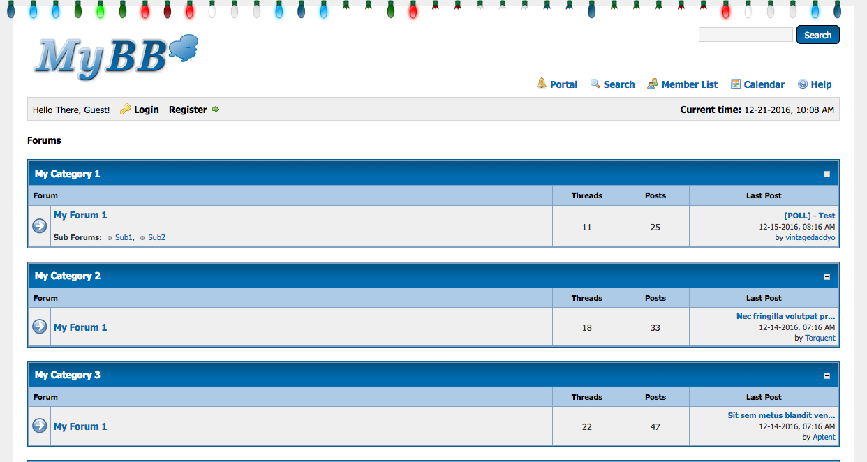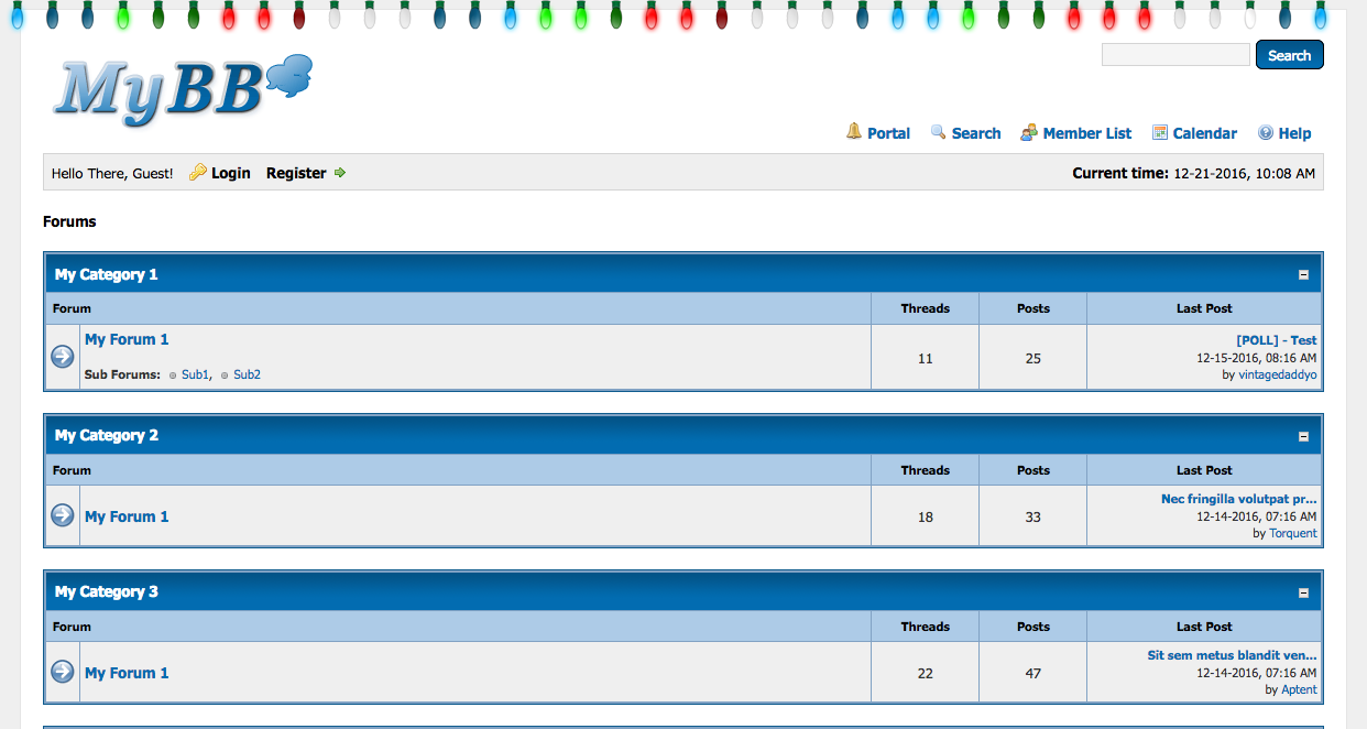 This plugin allows you to display Christmas lights at the top of your forum. You can even smash them by hovering over them.
