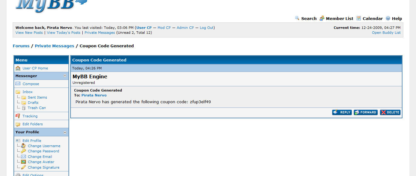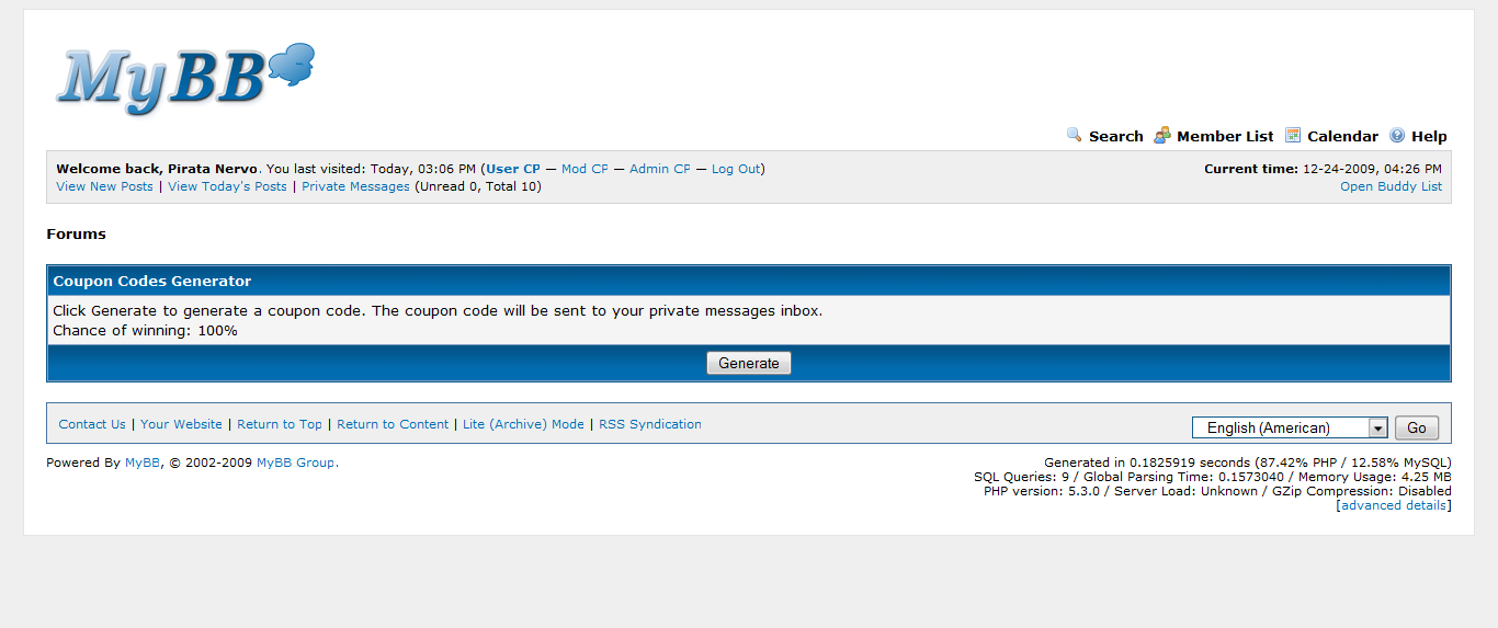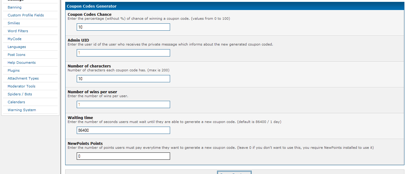 Coupon Codes Generator 1.2 von Diogo Parrinha für MyBB 1.6.x