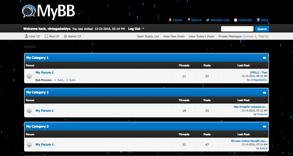 This Plugin is perfect for dark rainy days. It adds dark rain to your board with the option to turn the dark rain on or off via the user cp