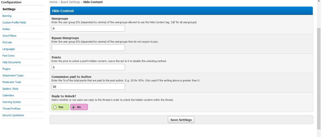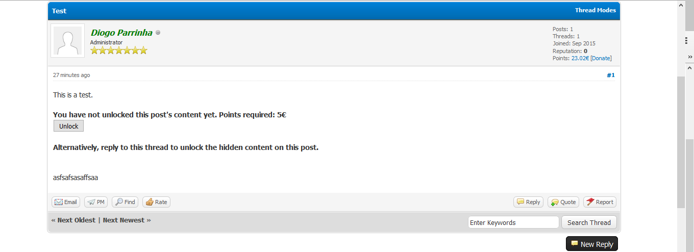 - Allow users to reply to the thread in order to unlock the content. This should be mostly used for boards where users want to hide content in the first post, allowing users to reply or pay to unlock the hidden contents of the thread.