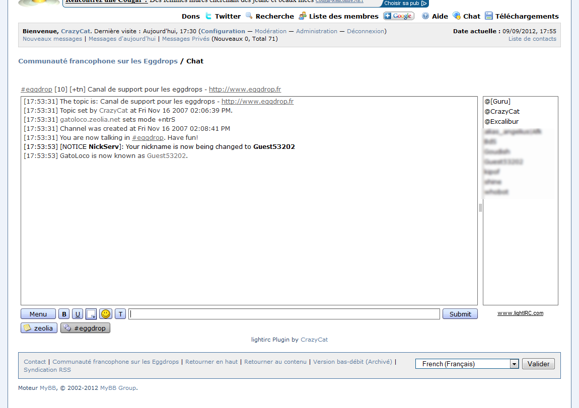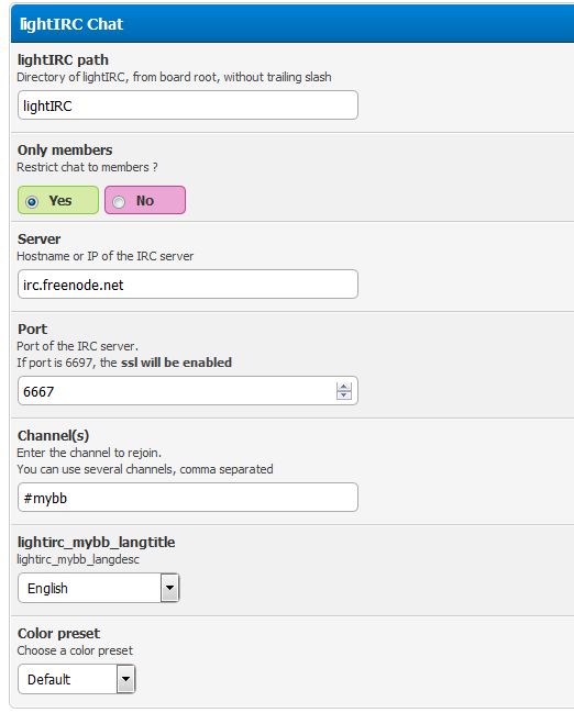 This plugins adds a chat page to let your user connecting to your IRC channel, whith the flash lightIRC interface.Autor: Crazycat