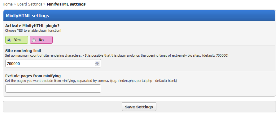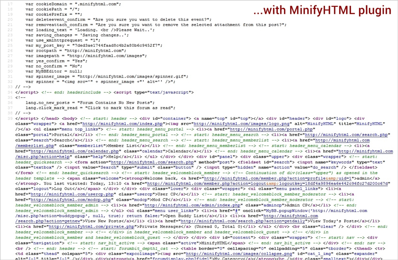 This simple plugin compresses the outgoing html code of forum site by removing unnecessary line breaks.Autor: SvePu