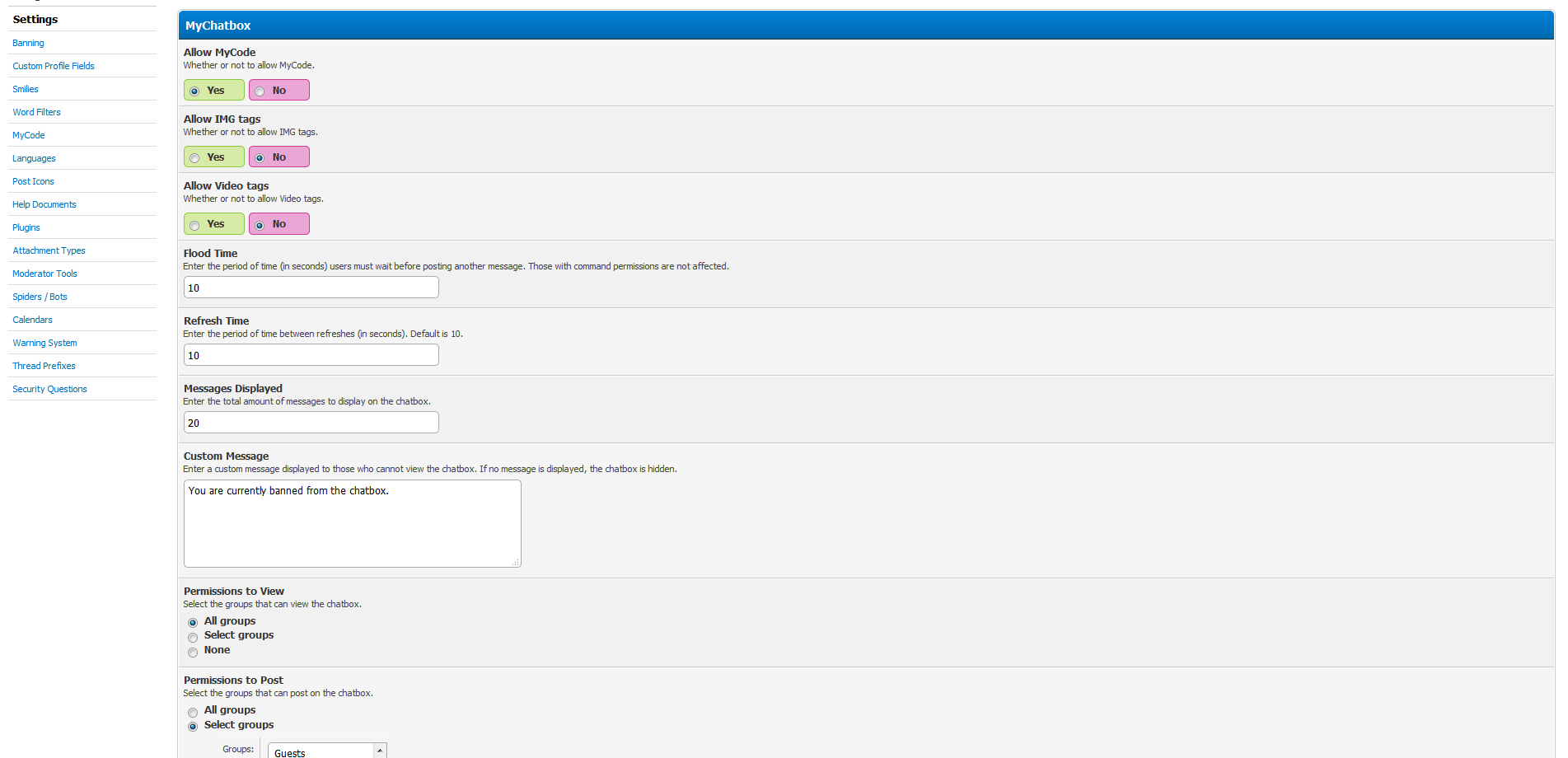 - Custom message displayed for users that cannot view the shoutbox.